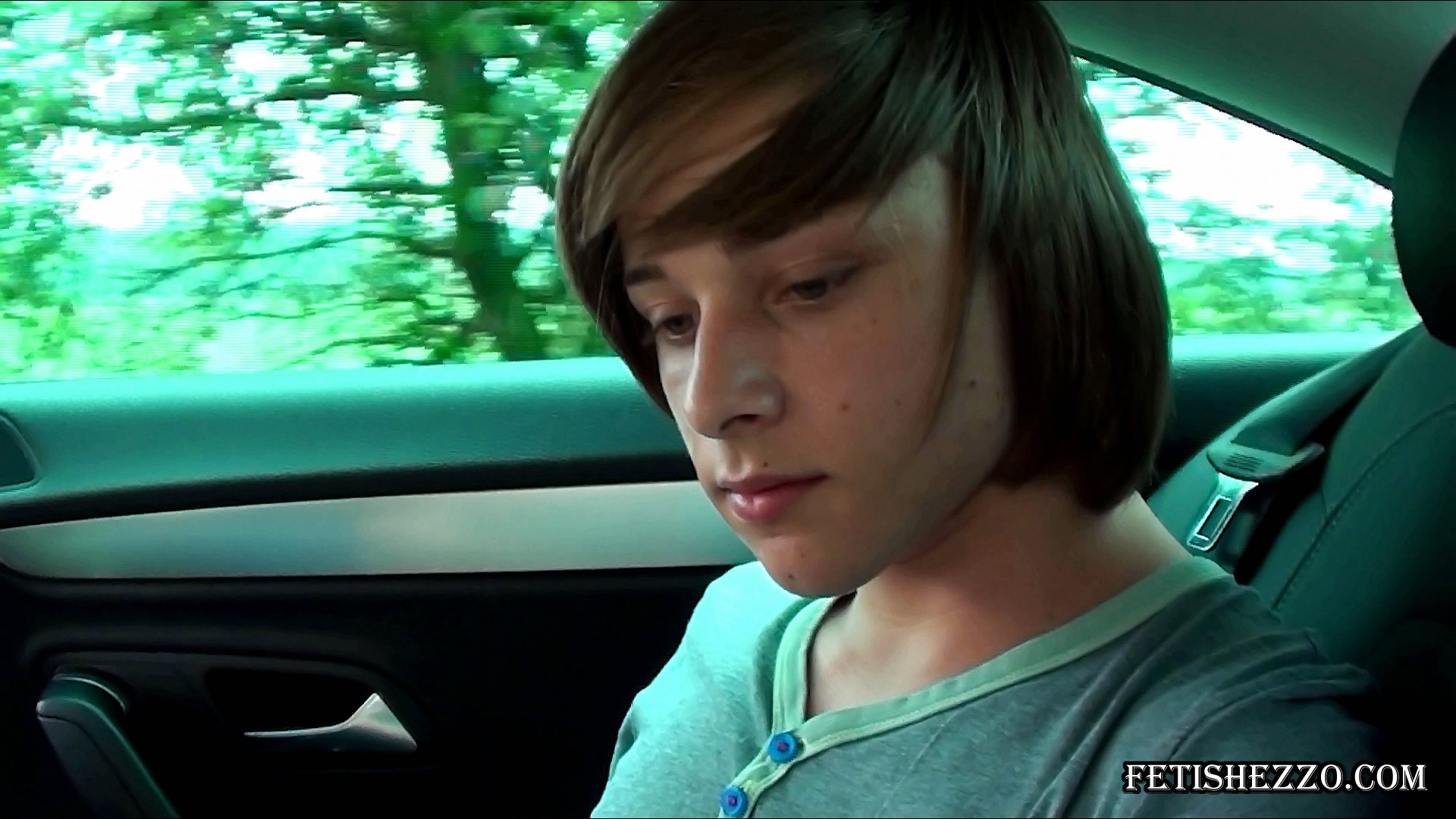 Japanese boy sitting on the floor and jerking