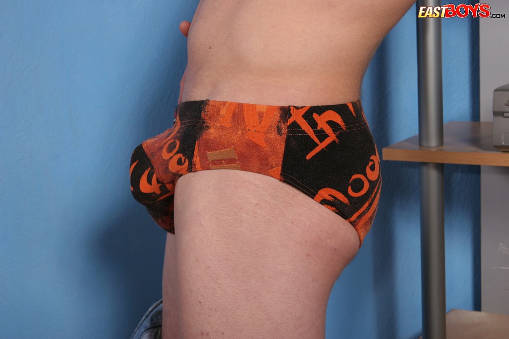 Slim boy grabs his long love-tool