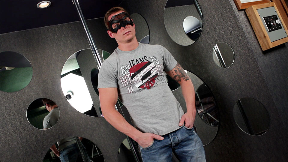 Straight guy in mask masturbates his cock