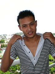 16 photos of cute gay Thai kickboxer posing and stripping