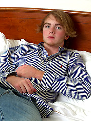 Cute blonde teen boy exposes his slim body
