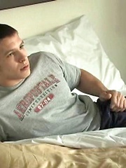 Gay jock strokes his cock