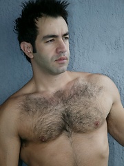 Horny latino macho shows his hary body and fat uncut cock