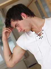 Sexy Justin Walker busts a nut over his hairy stomach.